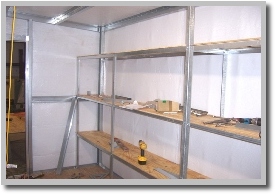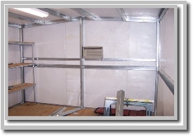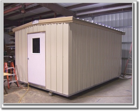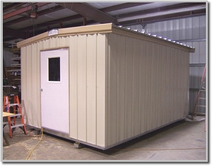 - Built from Galvanized Steel - 26 ga. Painted Galvalume sheeting on sides - 26 ga. Galvalume R-Panel on Roof - Reflective Foil Bubble Insulation - 3/4" Tongue and Groove Plywood Floor - 4' Aluminum Door w/ Window - Fluorescent lighting & receptacle outlets wired in - Built on 6"x6" Treated Runners - Built in our shop, then delivered to the location of your choice. Options: - Built In Air Conditioner - Steel Shelving with Plywood shelves - Overhead Door |